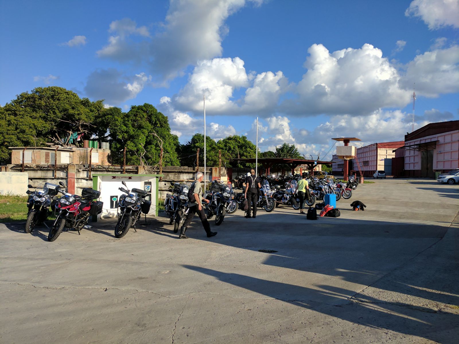 Nachdem wir alle Formalitäten und Probefahrten erledigt hatten, starteten wir im Konvoi von 19 Bikes zu unserer Rundreise. Zuerst führte uns Hanival (aka Hannibal), der Tourguide vom Vermieter, durch die Vororte auf den Malecón zurück. Vorbei an der CH-, US-Botschaft und unserem Hotel näherten wir uns der Altstadt. Für einmal waren nicht die farbigen Oldtimer die Attraktion in der Altstadt, sondern unsere dröhnenden Maschinen. Überall standen die Leute, winkten und fotografierten.