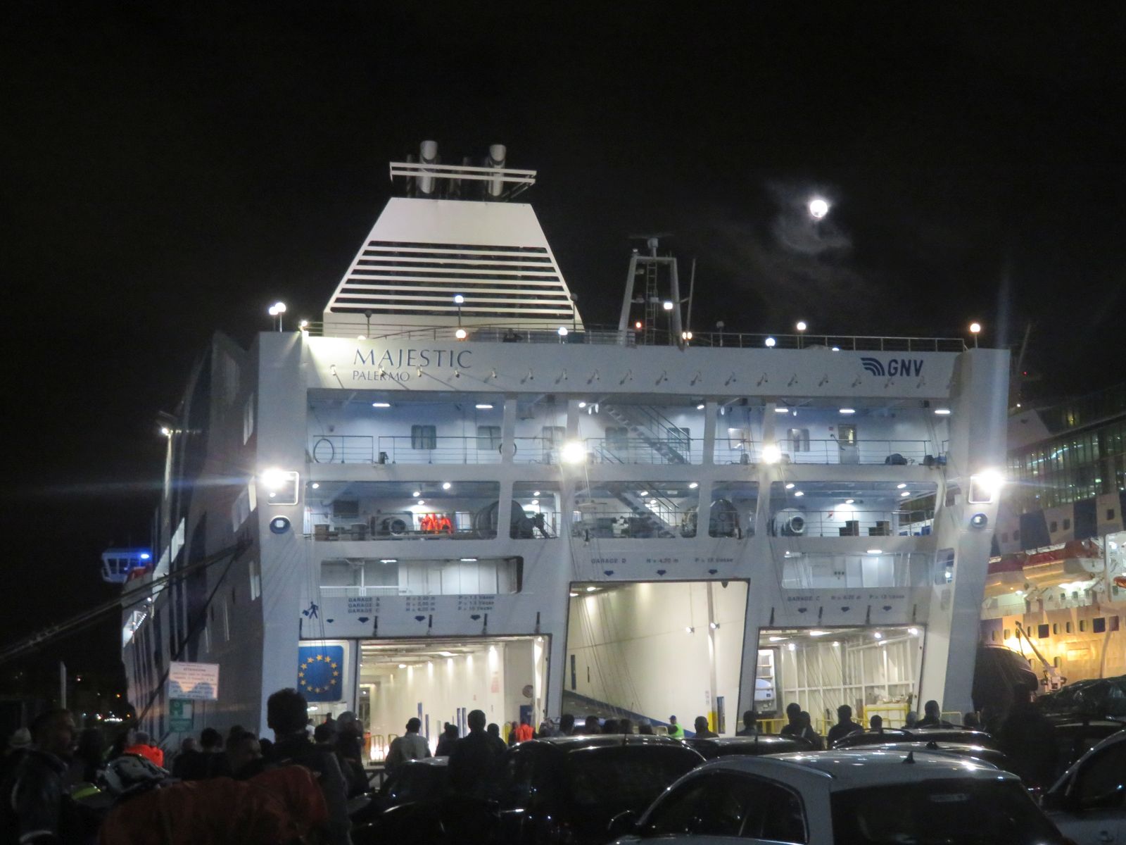 Die Fahrt nach Tanger Med wurde durch einen Halt in Barcelona unterbrochen und schliesslich kamen wir in Marokko um Mitternacht an.