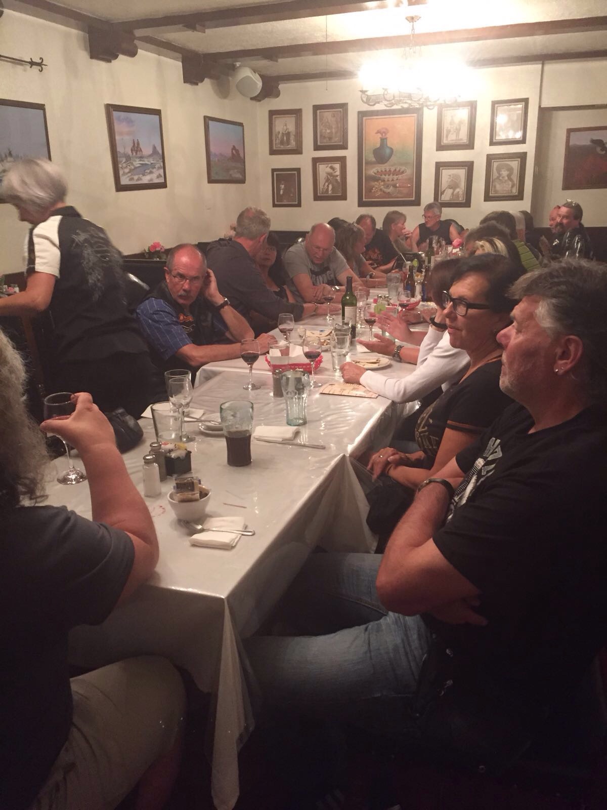 Nach all diesen Besichtigungen trafen wir gegen Abend in Gallup und dem berühmnten El Rancho Hotel ein. Hier gab es nur ein kurzes Happy Landing, da es vom Hotelpersonal verboten wurde. Wir fandn uns daher zur Fortsetzung an der Hotelbar wieder. Diese beschlagten wir nach dem Nachtessen wieder und so nach dem Motto 'ds letschte hei mir geng no gnoh' wurde es doch für ein Paar ein längerer Abend. Soviel ich am Morgen hörte war um 23:90 doch mal Feierabend.
