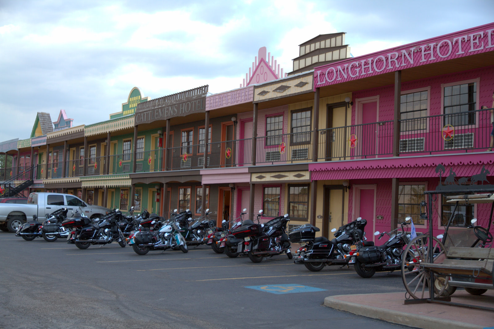 Etwas ausserhalb kamen wir an einem Nachbau der Cadillac Ranch vorbei, nur das es hier VW Käfer sind. Bald darauf trafen wir im Big Texan in Amarillo ein, wo wir wunderbare Steaks zum Nachtessen hatten. Nach einem (oder zwei ?) abschliessenden Drinks ging dieser Tag zu Ende.