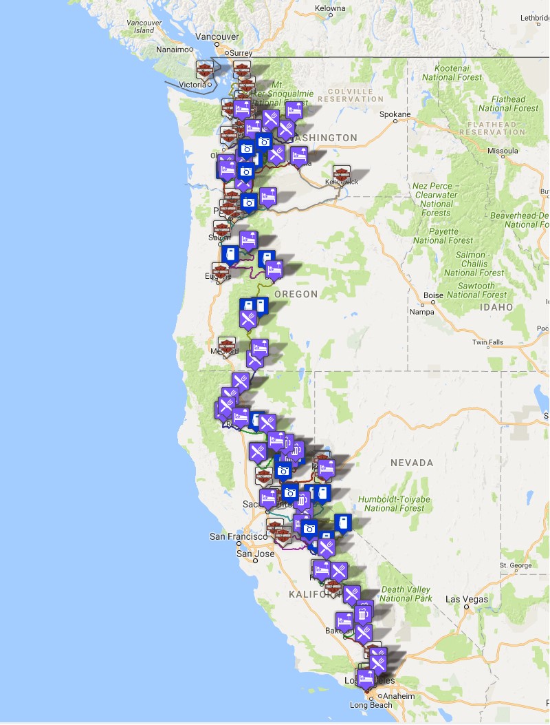 Die erste grobe Planung einmal durch die Sierra Nevada und die Cascade Ranhe nach Norden und entlang der Küste auf dem Highway #1 wieder nach Süden zu fahren machte ich schon kurz nach den 2003er Reisen. Jahrelang wurden diese nie umgesetzt, aber nun, am 1. Juni 2017 geht es los.